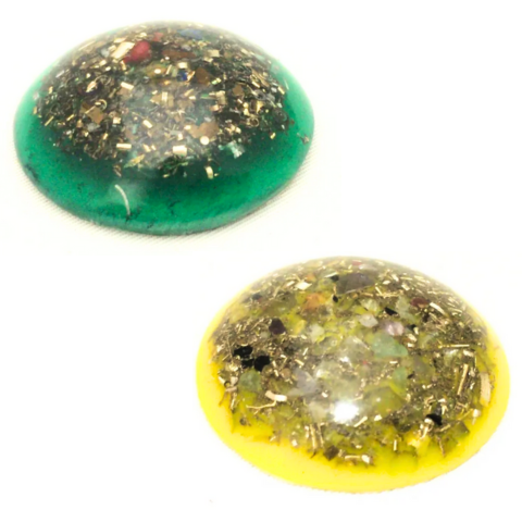 カラフルな樹脂の中に、「5種類以上の金属片(シェイビングメタル)」をぎっしり封入。